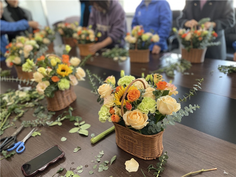 在活动中,大家不仅学会了插花的基本技巧,更重要的是,在这个过程中,大家的心灵得到了净化,心情也变得愉悦起来。员工纷纷表示,这次活动让她们在紧张的工作之余,找到了一份宁静与放松,也让她们更加珍惜生活中的美好时光。