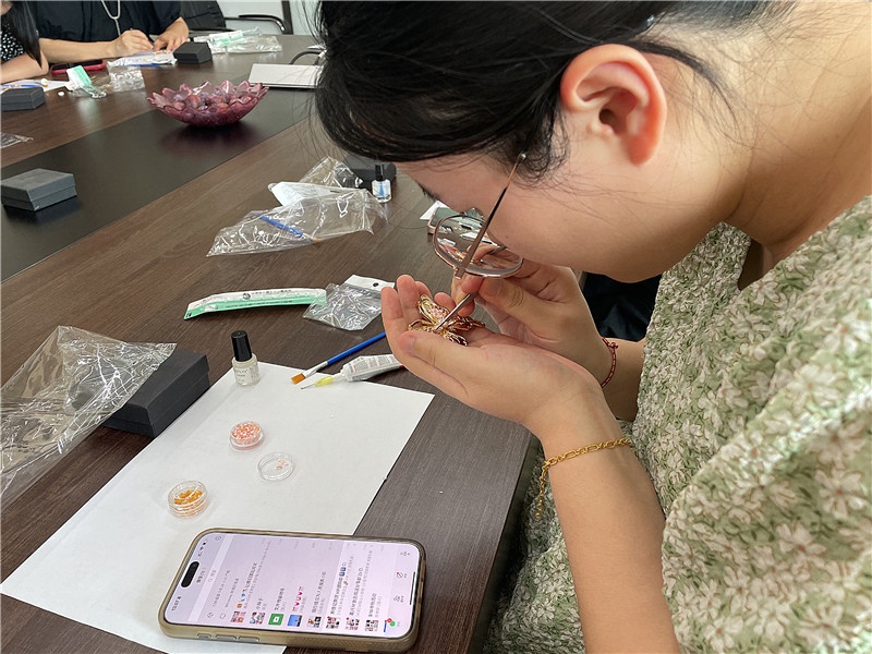 中秋,不仅是一个节日,更是一种文化的传承,从嫦娥奔月的美丽传说到苏轼“但愿人长久,千里共婵娟”的千古绝唱,每一段故事,每一首诗篇,都是中华儿女对美好生活的向往与追求,让东升国际 在月光下,重试那些被遗忘的习俗,让传统文化的种子,在新生代心中生根发芽,绽放出更加灿烂的花朵。9月14日下午,东升国际官网-追求健康,你我一起成长 工会委员会组织开展了“螺钿胸针DIY”的中秋主题活动。高奢首饰里的古法沉淀,通过非遗技术去感知传统文化,让精神狂想的蝴蝶飞出来。以贝石之心,铭金蝶之质。让螺钿胸针来开启中秋的篇章。