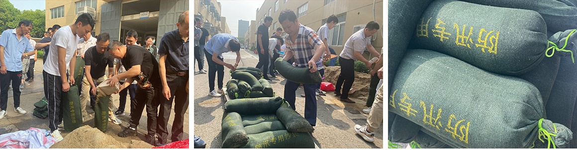 4、 夏季防汛抢险应急演练:车间班长进行了防汛沙袋灌装演示,大家3人一组,都积极参与了沙袋灌装实操。