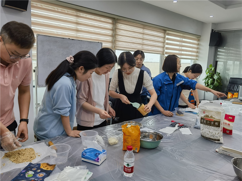 本次活动内容为制作苏式月饼和蛋黄酥。参与活动的职工们一起动手制作馅料、油皮和油酥,体验亲手制作月饼的乐趣。醒面等待时,大家互相交流制作心得,各自分享中秋趣事,活动室充满欢声笑语。
