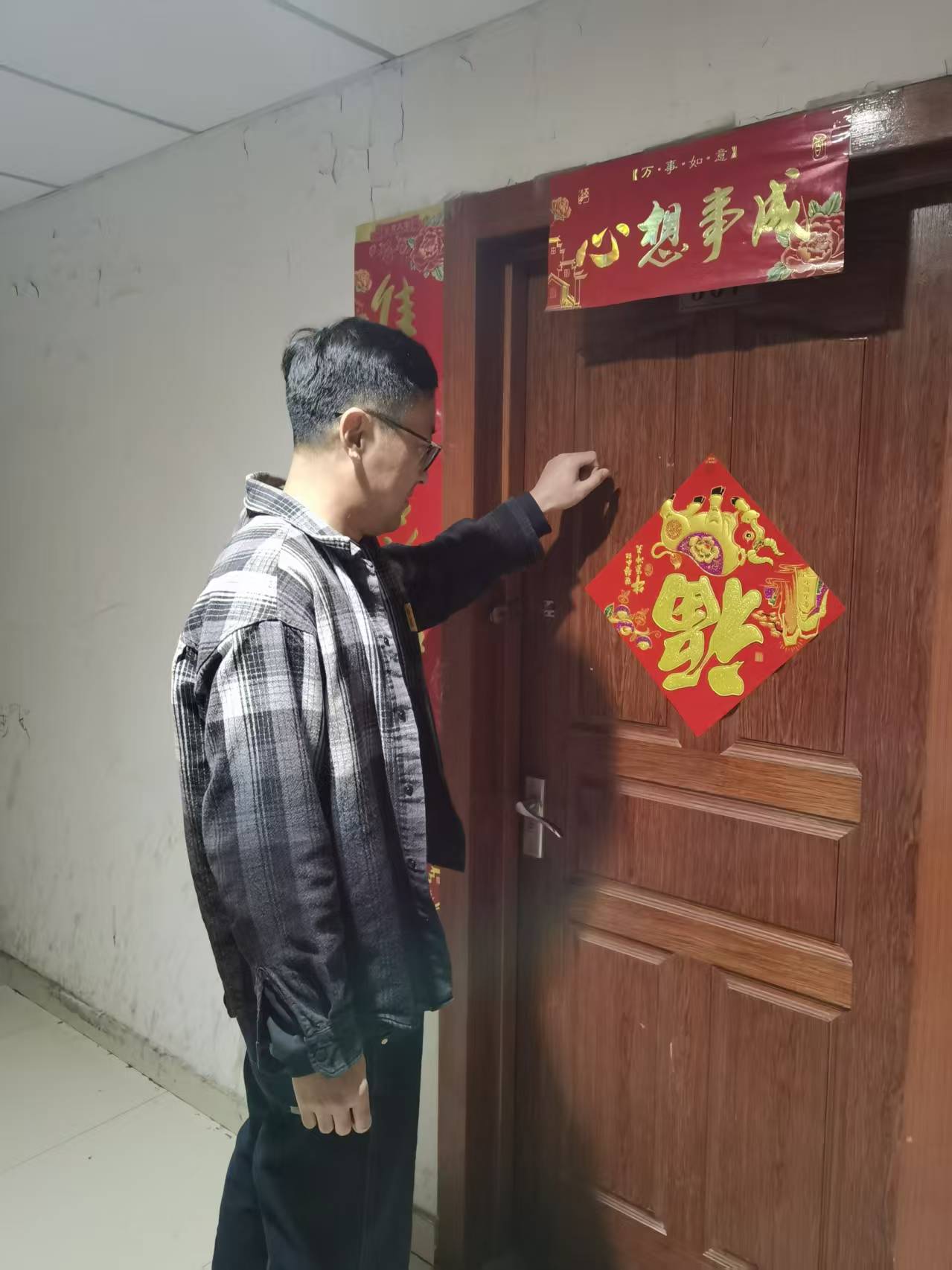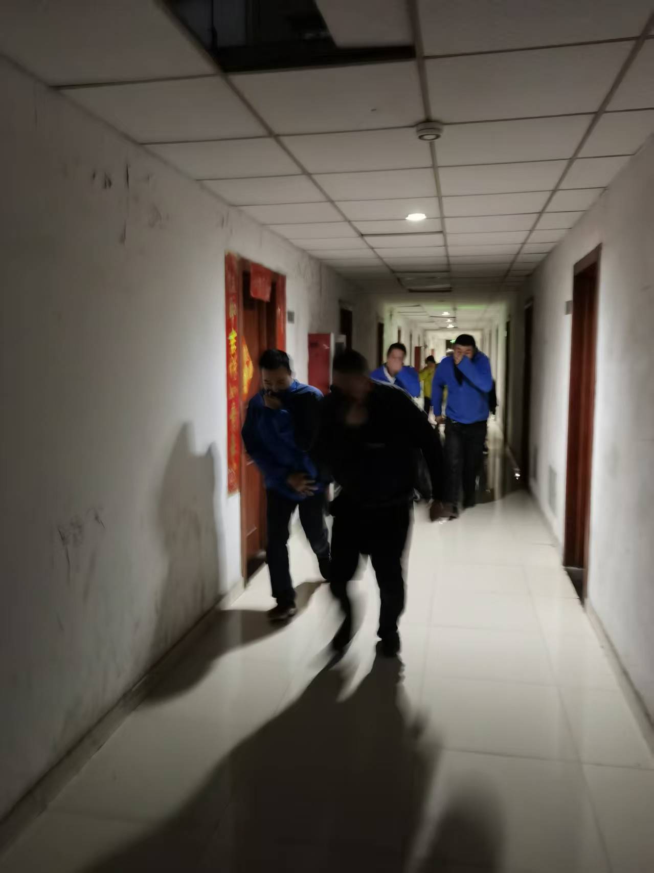 二、员工宿舍火灾疏散逃生演练:员工宿舍楼某房间 “冒出” 烟雾,部分员工正处于休息准备阶段,宿舍楼引导员敲门协助员工疏散;
