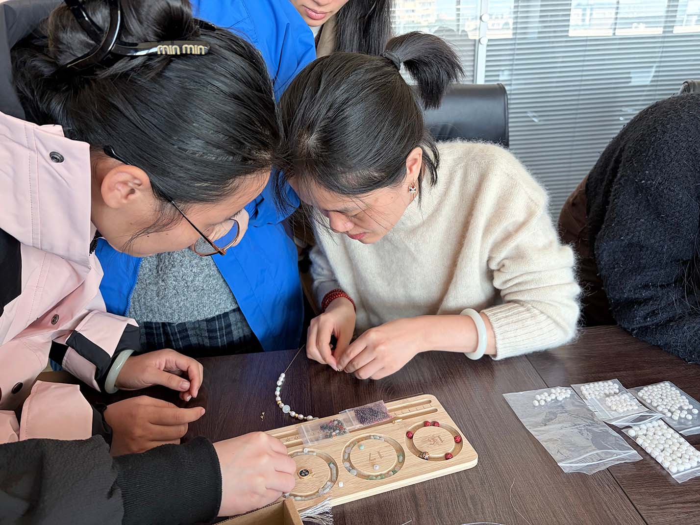 “比起买现成的饰品,亲手做的珍珠手串更有意义,每一颗珠子都是自己选的,戴在手上特别有归属感。”一位同事这样说道。此次珍珠手串DIY活动,不仅让大家领略了天然珍珠的珠光之美,更在动手过程中传递了慢生活的精致态度,为忙碌的日常注入一份手作温情。